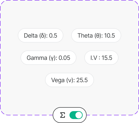 Traders can enable Greeks using a toggle in the option chain header. This way, users who don't want to see Greeks can keep their view simple, while those who need detailed data can turn on the full column view whenever they want.